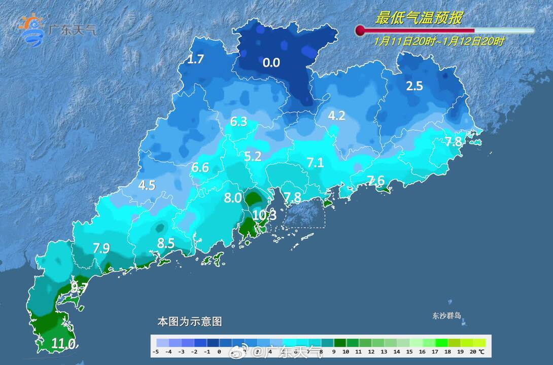 表象台掂量,12日清早广东气温将降至最低,粤北偏北市县0℃~3℃,高海拔山区-3℃~-1℃,粤北偏南市县和珠江三角洲北部市县4℃~6℃,有冰冻和霜冻。13日—14日,气温每日回升。15日后将有新的冷空气补充。