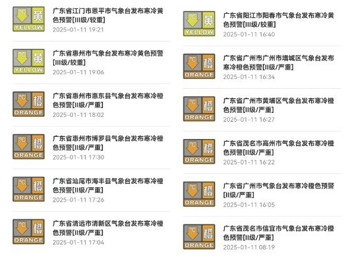 广东当今正在奏效的清冷预警。 图源:国度预警信息发布中心