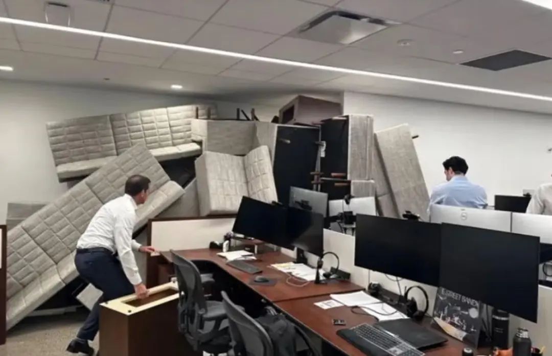 跟着枪击事件的音信传开,其他私募股权公司和银行的职工暗示,他们向在黑石职责的一又友发讯息盘问情况。一位黑石职工共享了一张像片,自满沙发堆叠到了接近天花板的位置,充任路障。